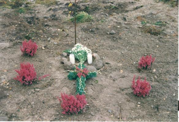 Han ligger begraven i utkanten av ett fält som hör till gården, på toppen är ett äppelträd planterat, med äppelsorten ”Alice”.