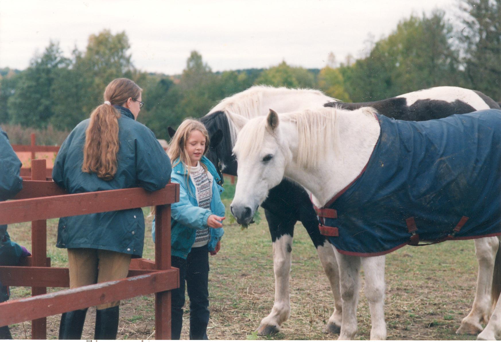 Alice och sin mamma Indiana Rose på sommarbete 1997