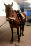 Hästen som jag har hand om är en söt brun kille i ponnystorlek. Mycket trevlig att hantera och rolig att rida. Kul att testa att rida lite nya hästar ibland =)
