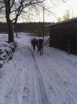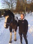 Senare på eftermiddagen åkte jag och Axel till stallet, kvällens dressyrträning blev av trots en dryg decimeter snö! Vi kom till stallet medan det fortfarande var ljust men lagom till uppvärmningen kom mörkret ganska snabbt. Snart kan det nog gå att rida träningen medan det ännu är ljust, kanske kan bli lite fler bilder på det hela då =) Alice var riktigt trevlig att rida, dock lite trippig ibland då underlaget inte var perfekt. Hon har inga snösulor utan får lite styltor under fötterna av snön. Är riktigt nöjd med träningen och ännu mer taggad att träna mer, inte bara hästen utan även mig själv. Hittade massa nya fel på mig idag, mestadels att jag är väldigt oliksidig och svag i min högersida. =( Är väl kanske egentligen ingen nyhet, men det blev väldigt tydligt just idag.