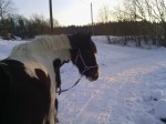 I stallet var det kallt, det gäller att jobba sig varm dessa dagar! Passade på att fixa lösdriften medan de sista dagsljuset försvann och sedan gjorde jag iordning Alice för en barbackatur i paddocken. Trots snön gick den ganska bra att rida på och vi repeterade lite grejer från träningen i söndags för att inte glömma bort allt.