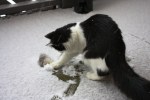 Även idag hade vi drygt två timmars lunchrast vilket ledde till att jag och Axel åkte hem och käkade lunch. Anledningen till detta är att när vi kom hem efter skolan igår hade katten lämnat en trevlig överraskning på golvet som ganska tydligt visade att han minsann inte tänkte vara ensam hemma sååå länge! Så idag släppte vi ut honom innan vi åkte till skolan vid åttatiden och nu vid halv ett fick han komma in igen. Han mötte oss i korridoren och verkade vara glad och nöjd. Sen är det ganska skönt att komma från skolan en stund, för att ta nya tag till eftermiddagens seminarie-diskussion.