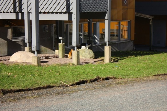 Efter blod-besöket gick vi och köpte en ny transportbur till Katla nu när han ska ut och åka i helgen. Den han har nu har han lixom växt ur. Vi trodde inte riktigt att han skulle bli så stor så snabbt tror jag. Men som Axel sa, vi får hoppas att katter inte är som guldfiskar, att han kommer bli ännu större nu när han fått en större bur 😉