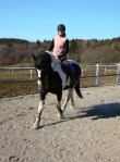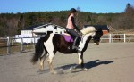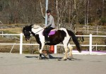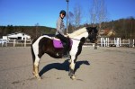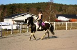 Efter att Axel och Alice lekt runt lite på banan satt jag upp och red lite jag med. Joggade runt henne lite först innan vi skuttade över ett hinder några gånger i olika varv. Alice kändes fin och hoppade villigt, om än lite segt i värmen. Svettig blev hon såklart men hon såg ändå ganska nöjd ut när hon fick komma ut i hagen igen.
