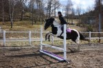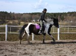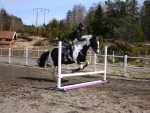 Idag var det dags för Axel att rida igen! Vi var i stallet vid tolvtiden och fixade iordning Alice för lite hoppning. I början var Alice lite seg och Axel tyckte att det var lite svårt att få henne att trava framåt. Sedan när bommarna kom fram blev problemet dock lite omvänt =) Han fick först trava över lite bommar åt olika håll och sedan fick han travhoppa ett litet hinder och efter det fick han hoppa lite i galopp också. Jag tycker att det gick riktigt bra, Alice är inte alltid så lätt att hoppa med! Axel säger att han gärna hade haft lite mer kontroll och lite bättre balans, men det kommer med tiden!
