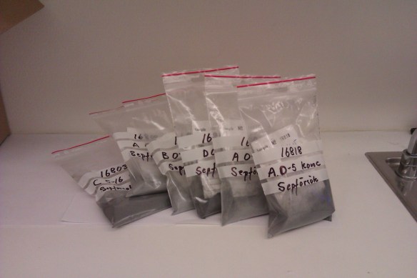 Även denna dagen har varit trevlig, trots att träningsvärken från igår inte direkt blir mildare med varje timme! Jag var här strax efter sju idag, dock lite onödigt att vara här så tidigt nu med facit i hand, men det kan man inte veta innan! Jag har endast fått två siktprover från gruvan idag, resten av tiden har jag lagt på datajobb i form av databasarbete och lite examensarbete. Jag har även varit på en trevlig lunch med Sanna och hennes (och lite mina också) arbetskamrater och efter det blev det fika inne på ”Grufkontoret” där nyss nämna människor har sitt tillhåll.