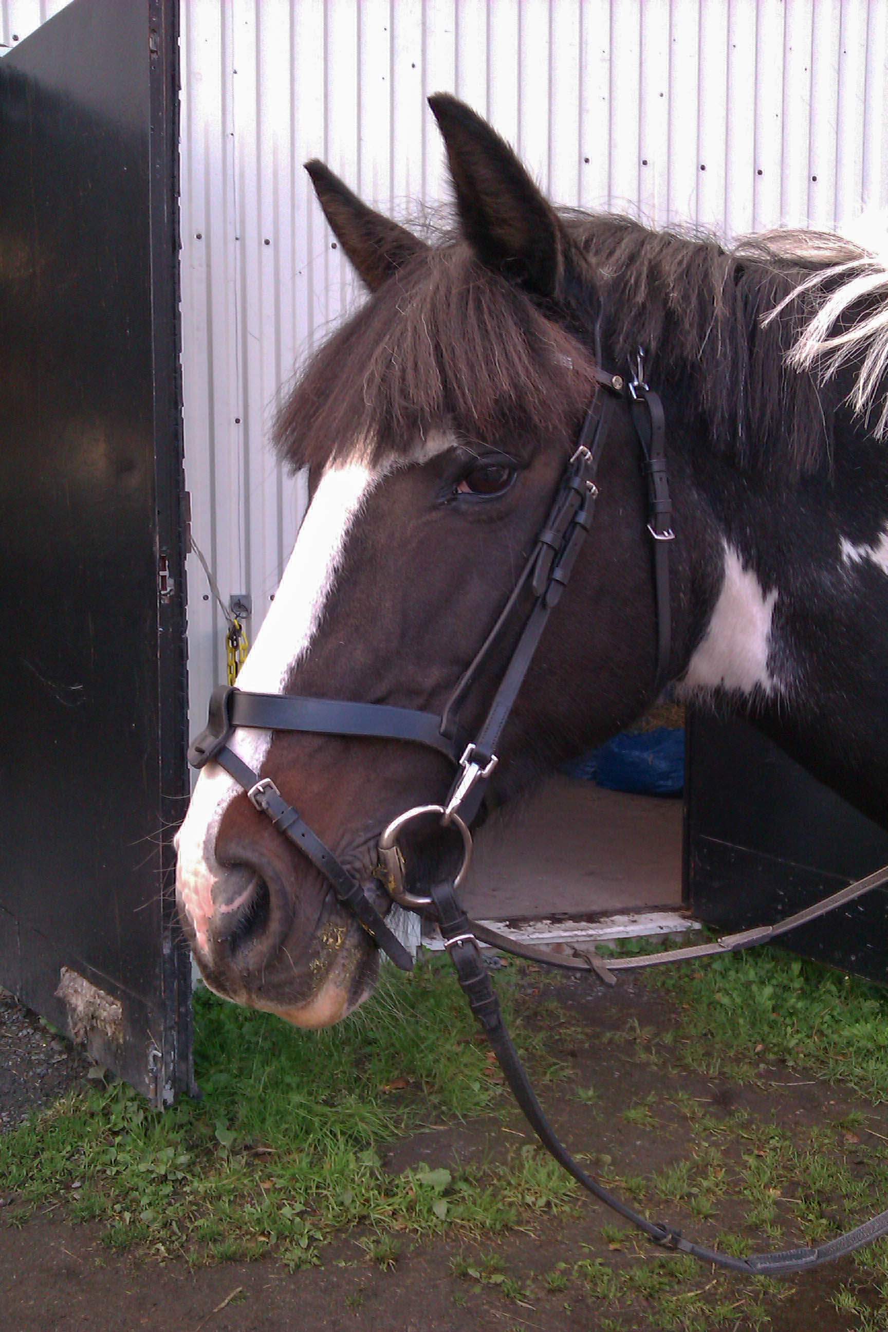 Vid tvåtiden fick jag ta bussen till Partille och hämta bilen som nu var justerad och hade fina och rena däck i bak (det varade inte så länge dock eftersom det är grusväg till stallet…). Det öste ner regn så jag tog tillfället i akt att åka mot Kungsbacka för att gå in på Börjes och köpa ett nytt bett till Alice då det hon redan hade är alldeles för stort. Jag kom faktiskt därifrån med två ”bett”; ett tredelat eggbett (med fasta ringar) och ett hackamore. Jag har alltid velat testa att rida Alice med hackamore (bettlöst) och det Börjes hade var inte alls dyrt. Jag gjorde inte det idag dock, jag vill gärna ha hjälp att passa in det ordentligt först då jag aldrig har gjort det tidigare.