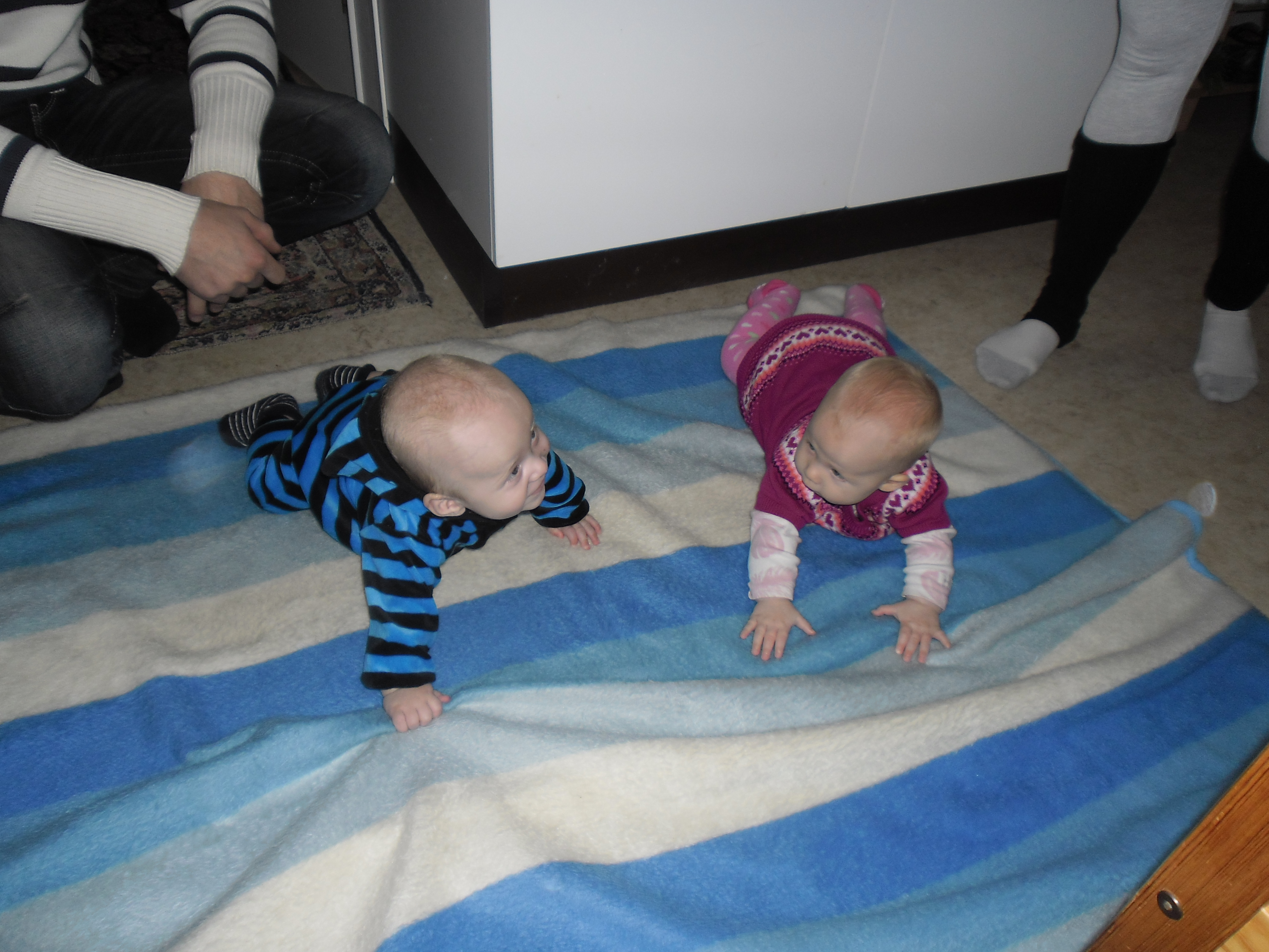 Vi tog en liten promenad i skogen bakom husen och Katla skuttade glatt fram både före och efter oss. Skojjigt att få sällskap på promenad tyckte han! När vi var tillbaka vid vårt hus klurade vi på om vi skulle våga lämna honom själv ute eller om vi skulle ta med oss honom in igen. Då fick vi syn på Katlas bästa kompis Bernard som satt på taket till återvinningsstationen och stirrade på Katla. Efter en liten stund vände hon tvärt, sprang ner för trappan och sedan travade hon rakt fram till Katla! Hur gulligt som helst! Katla blev dock lite förvånad och fräste till henne, feg som han är. Men sedan verkade de bli vänner igen och just nu leker de bland buskarna utanför vår lägenhetsbyggnad. Vi tänkte att vi nog kunde lämna Katla ute i Bernards förvar =)