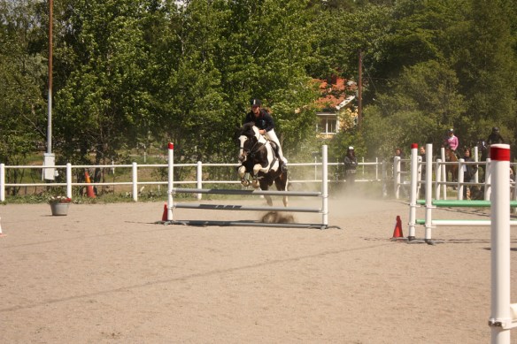 Gårdagens hoppträning gick riktigt bra! Jag hade en bättre plan än förra lektionen och mina ”elever” skötte sig riktigt bra! En av dem red dessutom min häst, så då kan det ju inte gå annat än jättebra! 😉 Vädret var lite bättre också, förra gången pölade regnet ner ganska bra, men igår fick vi endast ett fåtal droppar på oss.