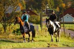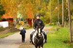 Från första början var det ju egentligen tänkt att Alices medryttare skulle tävla Alice men då hon inte kunde tänkte jag att jag kunde ju faktiskt hoppa i stället! Så i morse var jag och Axel tidigt i stallet och fixade i ordning Alice; borsta, knoppa och klä på tävlingskläderna! Även Ida och Nemo skulle med på tävlingen. Tjugo i tio skrittade vi bort från stallet och ungefär en halvtimme senare kunde vi skritta in på tävlingsområdet i Lexby,