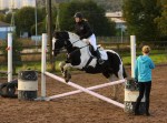 Vi anmälde oss och gick banan och sedan dröjde det en ganska lång stund innan det var Idas tur att hoppa sina två klasser med Nemo; 30 och 40cm hoppade de på sin första tävling tillsammans. Sedan dröjde det ytterliggare en stund innan det var min tur. Jag värmde upp Alice lite grand inne på banan tillsammans med två andra och tog då även två skutt på 60cm.