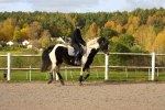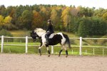 Lite bilder i det vackra höstvädret blev det ändå, men man ser att hästen inte är helt tillfreds med situationen..