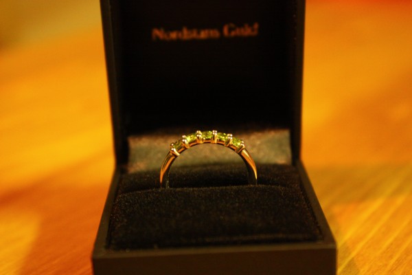 För sju dagar sedan hade vi nämligen varit förlovade i ett helt år! Visserligen tillbringades dagen med att titta på och prata om diamanter (vilket ni kommer att kunna läsa om i morgon) men vi hade inte tillfälle till att fira på något sätt, så ikväll äter vi god Axel-lagad middag och har det trevligt tillsammans! Dessutom skickade Axel in en 31-sidig artikel för godkännande och publicering igår, så det bör också firas!