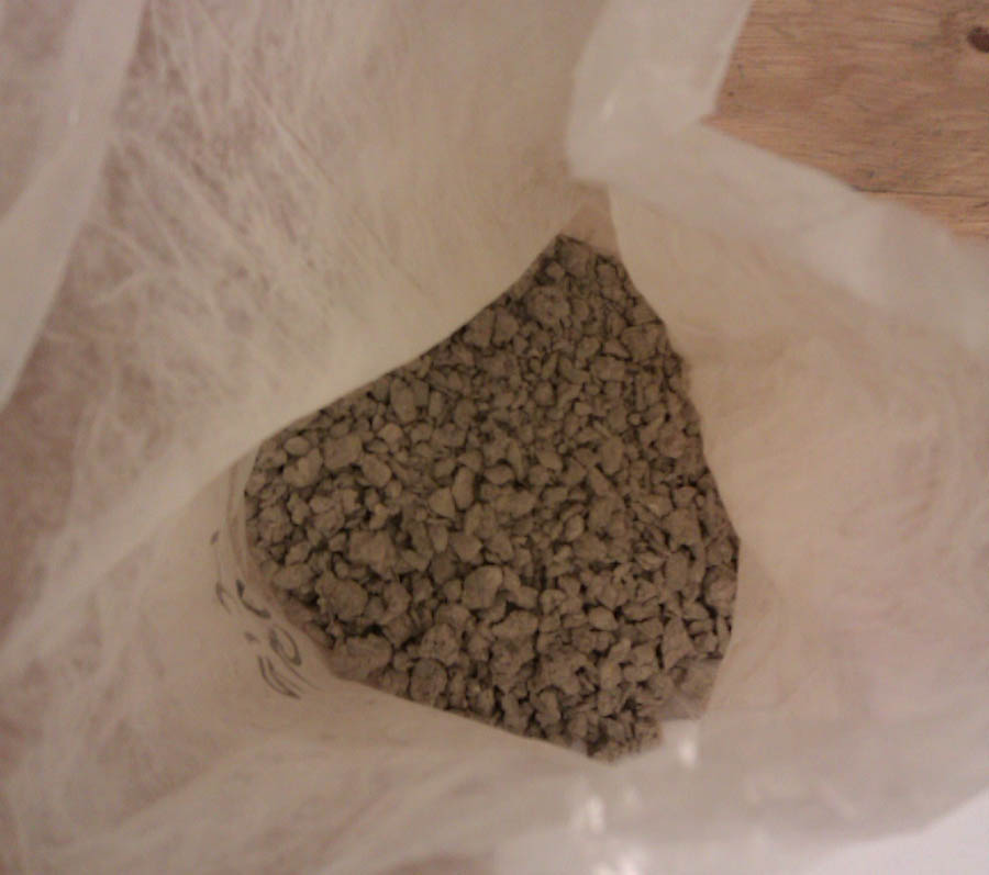 I förra veckan jobbade jag ju en del med mina prover för examensarbetet men glömde visst att lägga upp bilderna som jag tog. De flesta proverna ser ut som på bilden under; ett grusliknande material med en del smått och en del lite grövre i. För att kunna analysera detta på bästa sätt ska provet förberedas på en massa sätt. Jag började med att torka provet i ugnen (skolans ugn, inte vår!) och sedan delade jag upp varje prov i två olika påsar, ett för malning och ett för att sparas.
