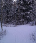 Alice var riktigt pigg idag och vi hade en mysig tur i skogen. Det var ungefär 7-8 minusgrader ute idag men jag klarade mig riktigt bra med mina kläder; ull-underställ, fleecetröja, tjock jacka, ridbyxor, överdragsbyxor, pannband, handskar, två par strumpor och så skor på det. Hjälm hade jag också!
