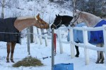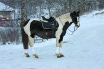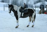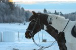 Efter förmiddagen på Bulycke var det dags för min egen lilla pålla att bli riden! Vi trotsade kylan (-11 mitt på dagen idag) och red lite dressyr i paddocken. Alice var dock alldeles för pigg och glad för att ha någon lust att jobba. De två första varven i trav kunde jag inte ens korta upp tyglarna för hon skulle sträcka på halsen och frusta hela tiden (nöjda läten). Hon fick rasta av sig lite iallafall, så får vi ta lite mer dressyr en annan dag. Ska se till så hon får galoppera av sig lite i skogen först!
