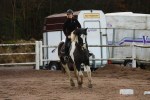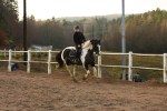 Efter en stunds framridning blev Alice riktigt fin att rida; mjuk, följsam och hon jobbade på ett bra sätt. Självklart förstörde jag allt detta när jag valde att ta en galopp. Själva galoppen var också fin men sen när jag saktade av till trav igen så ville hon inte alls göra som jag ville utan hon ville bara galoppera igen. Provade att trava över lite bommar för att få henne på andra tankar men jag ville inte bråka med henne, hon var ju bara pigg! Så jag gick över till nästa övning som innebar galopp och då blev hon glad igen.