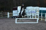 Vid elvatiden idag åkte jag och min underbara pojkvän till stallet tillsammans. När Alice var klar för ridning skrittade Axel fram henne åt mig medan jag drog fram lite bommar. Ridbanan var isfri och mjuk så självklart kunde jag inte låta bli att skutta över lite småhinder.