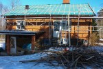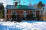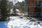 Mammas hustak håller på att läggas om nu i dagarna så under helgens gång har jag och Axel hjälpt till att rensa lite i trädgården. I går eftermiddags gjorde vi småbitar av gamla takdelar så de blev i bra eldningsstorlek för öppna spisen inne. Med hjälp av såg och en stor sten gick det som hejsan!