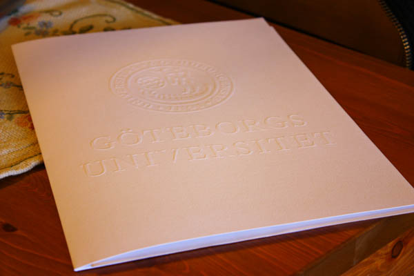 Det vita, stora kuvertet är från Göteborgs Universitet.