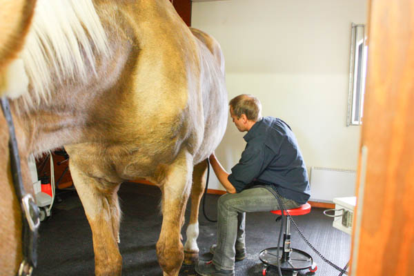 Efter detta fick Blondie behandlas med chockvågor på de skadade områdena (två) i några minuter och sedan fick hon ”medicin in i benet” (antiinflammatoriskt kanske?). Planen för Blondie nu är vila i minst tre månader då sådana här skador läker väldigt långsamt. Om två veckor ska vi tillbaka till kliniken och behandla henne en gång till med chockvågor som påskyndar läkningen och efter ännu en månad ska hon på återbesök då de tittar på benet igen för att se om hon behöver en till behandling eller om det ser ut att läka bra.