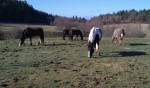 Och väl där kunde ju även Alice se att det nog inte var så tokigt med lite gräs ändå! Alla kompisar följde efter och när jag lämnade dem betade de alla fridfullt i förmiddagssolen. Alice rullade sig också, så kanske får jag gnida bort årets första gräsfläckar i morgon! =)