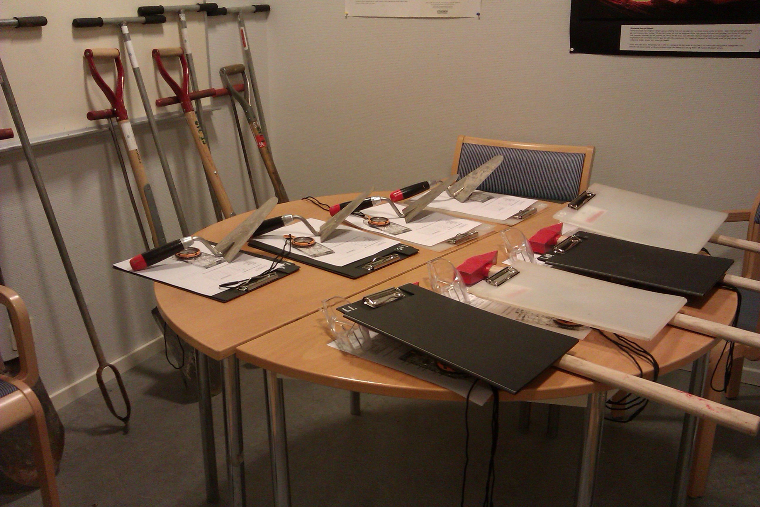 Nu är maj månad kommen och det är dags för ettorna att dra igång jord- och berggrundsdelen på kursen ”Geovetenskaplig metodik”. Precis som förra året är jag assistent på den här kursen och i går delade jag (och Axel) ut fältutrustningen. Det blir en del grejer att släpa på, de är tre i varje grupp och på jordartsdelen får de en spade, MUK, ”borr”, slev, kompass, ritundelägg och karta. Berggrundarna får ”bara” en hammare, skyddsglasögon, kompass, GPS, karta och ett ritunderlägg.
