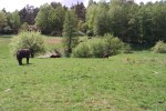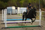 När ponnyerna var klara kom stora Tydde in på banan och han fick göra samma sak med cavalettibommar och studs. Han hade aldrig hoppat studs förut så vi tog det långsamt, men han fattade snabbt och hoppade fint, om än lite slarvigt och hastigt ibland. Men han lär sig snart! För just Tydde var det här en väldigt bra övning då han har en tendens till att hoppa onödigt högt över hindren. Med studs kunde han inte riktigt hoppa så högt och stort över, utan att landa i nästa hinder, så då hoppade han lagom högt i stället.