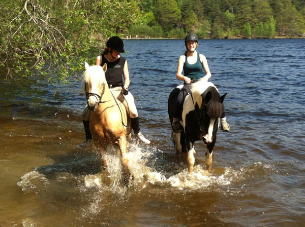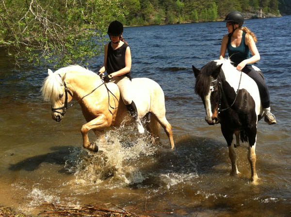 Först ut var ponnygruppen med Jocke och Sara (hästnamn!), som idag hade sällskap av en ny ponny; Dawanty. De fick börja med att korta stiglädren två hål och skritta och trava över upphöjda cavalettibommar. Innan vi sedan började hoppa fick de galoppera runt fyrkantspåret ståendes i sina korta läder och känna att de hade balans och lite svikt i benen. Hoppas de har träningsvärk i morgon!
