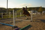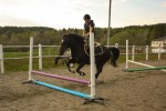Igår kväll var det dags för hoppträning igen och det stod gymnastikhoppning på schemat. Gymnastikhoppning tränar hästarnas smidighet, styrka, kondition och kvickhet då man hoppar flera hinder i rad efter varandra. Idag hade vi bara tre på raken, men jag har varit med om träningar där man har haft uppåt tio stycken på rad.