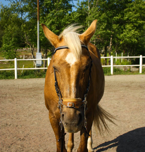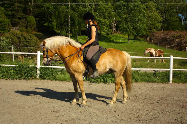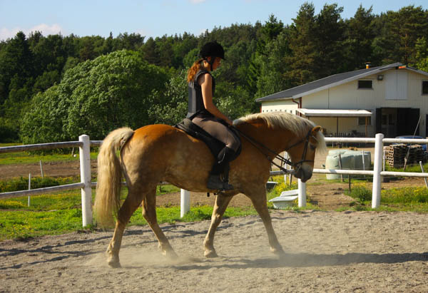 Efter skolan åkte jag till stallet och hängde med Linda på en kort skrittur i eftermiddagssolen. Jag red Blondie och Linda red Amadeus. Blondie har precis fått börja skritta igen efter sin skada men Amadeus däremot behöver mer motion än bara skritt så Linda red honom lite i paddocken efteråt. Han ser riktigt trevlig ut emellanåt.