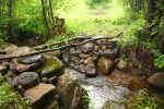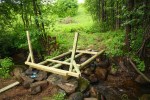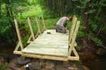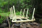 Vi sågade och sågade och sågade och sedan skruvade vi lite och sedan körde vi ner alltihopa till broplatsen med fyrhjulingen. Och där skruvade vi och så skruvade vi och så skruvade vi lite till. Sen sågade vi lite. Sen körde vi fast med fyrhjulingen. Sen kom vi loss. Sen spolade vi av all leran från fyrhjulingen och oss själva och sen åkte vi hem och nu ska vi SOVA!