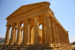 När vi kände oss nöjda inomhus gick vi ut i den 35-gradiga värmen och gick mot templen. Valley of the Temples, som inte alls är en dal utan mer en rygg faktiskt, ingick 1997 i UNESCOS Heritage Site list, och är därav en av Siciliens huvudattraktioner. Resterna av hela sju tempel finns att skåda här, nämligen Temple of: Juno, Concordia, Heracles, Zeus Olympic, Castor and Pollux, Vulcan och till sist Asclepius. Alla tempel är byggda i ”doric style” unde 1400-1500 talet men självklart är de nu restaurerade och ihopklistrade efter bästa förmåga.