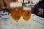 På eftermiddagen tog vi det ganska lugnt. Jag och Axel tog en promenad i staden och vilade sedan lite på hotellrummet tills kvälls-svalkan kom då vi kunde ge oss ut i staden igen. Det är lite lustigt med den här staden, på dagen är den helt ödslig med endast enstaka turister och försäljare ute vid hamnen eller på båtarna. Gatorna är tomma och affärerna är ofta stängda. Men på kvällen blir det livat och det är plötsligt människor överallt, marknadsstånd och mindre tivolimaskiner ploppar upp på torgen och längs hamngatan, butikerna öppnar, restauranger som man inte visste fanns dyker upp. Det finns till exempel en restaurang här som bara består av ett kök, fram tills det att solen gått ner då gatan utanför köket fylls utav bord och stolar med utsikt över havet precis utanför gatan. Lite lustigt! Där åt dock inte vi, denna kväll åt vi vedugnsbakade pizzor och drack öl i stället för vin. Inte så tokigt det heller!