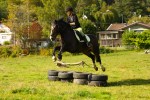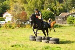 Idag fick jag och Linda hjälp av Johan (Sofias man) i stallet att fylla transporten med mindre stockar, lite ”pinnar” och gamla bildäck för att fylla ut vår terrängbana lite. På söndag ska vi nämligen hoppa lite där och då måste vi ju ha lite nytt så det inte blir samma som förra gången! När transporten var full skulle vi åka till terrängbanan och jag fick backa lite trixigt med transporten två gånger för att ta mig dit. Första gången var det inte så svårt, då skulle jag bara backa bakåt från där vi hämtade stockarna, lite snett in på en ficka och sen kunde jag vända ekipaget och köra iväg så det gick väldigt smidigt.