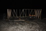 Det vi började med förra veckan var plintning och hårdgöring av ytan. Idag efter tävlingen fortsatte vi bygget och då var det självaste stommen som stod på tur. Vi jobbade fram till halv åtta i kväll ungefär, och vi hann nästan klart med ramverket, men inte riktigt. Det blev lixom mörkt =)