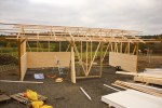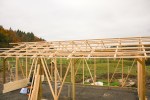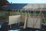 Det blev några timmars jobb idag med! Regnet höll sig borta men det var inte riktigt lika fint väder som igår. Idag har vi hunnit sätta allt trä på taket och 3/20 plåtbitar som ska utgöra taket. Sen hann vi även sätta all inne-panel och några av utsidans spikläkt. Nu är ju dock helgen slut så vi får se när vi lyckas göra det sista. Resten av plåten ska ju upp och så ska det bli panel på utsidan. Utsidans panel ska målas också, får passa in det på en solig dag tror jag.