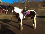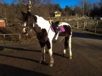 Efter jobbet, som för övrigt var helt fullsmetat idag, åkte jag direkt till stallet. Där hann jag precis mocka ut två kärror skit från hagen medan det fortfarande fanns lite, lite ljus kvar ute, och göra iordning Alice innan det var dags för dressyrträning. Som tur var, var tränaren lite sen så jag hann värma upp henne ordentligt.