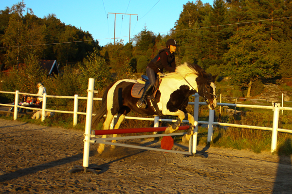 Efter mycket bomarbete i trav och galopp fick tjejerna hoppa några 40-50cm skutt, vi höjde inget alls idag eftersom det är ganska mörkt på kanterna i paddocken. I slutet av lektionen fick tre av tjejerna byta hästar med varandra för att få lite känsla över hur annorlunda det kan kännas. De var nog alla lite förvånade över hur svåra de andra hästarna var att rida, trots att det ser lätt ut för andra, när de själva är så vana vid att rida sina egna hästar. Nyttigt (och roligt!) att rida olika hästar!