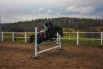 Byggde upp en serie med fyra räcken längs ena långsidan med två galoppsprång mellan varje. En riktig mjölksyre-övning för hästarna. Nyttigt! Alice fick ta det lite lugnt och inte hoppa så många gånger så klart, men hon såg pigg ut och tyckte ibland att det minsann räckte med ett galoppsprång mellan de där småhindren.