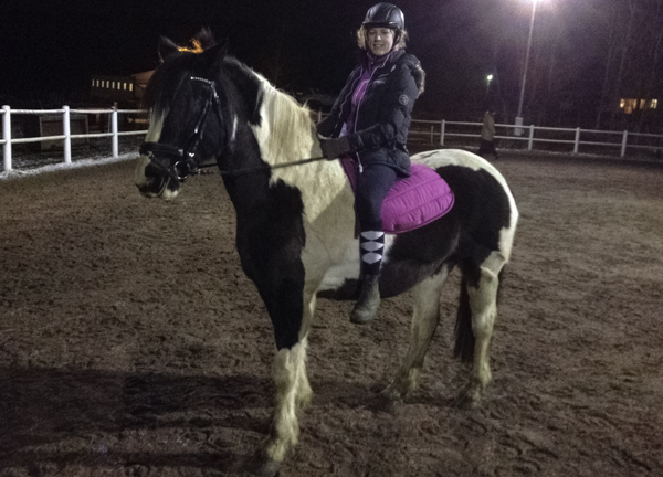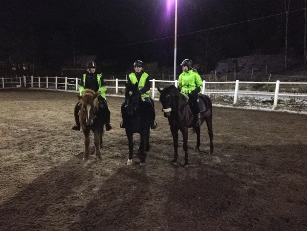Jag började med Zita, dels för att det var ljust ute och Alice verkligen inte bryr sig om att det är mörkt medan man rider, men också för att jag var helt själv i paddocken och kunde styra runt hur jag ville utan att behöva dela koncentrationen mellan hästen jag rider och alla andra. Senare på eftermiddagen blir det gärna lite fler folk i stallet och i paddocken, och då får man se upp så man inte krockar med varandra!