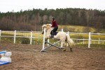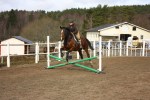 Marcello var jätteduktig idag verkligen! Han kändes väldigt pigg och glad och hoppade glatt. Han blev trött snabbt, men det blev även Åsas unghäst så vi höll inte på så länge. Själva övningen vi gjorde var fyra räcken på ena långsidan med två korta galoppsprång emellan, en riktig gymnastikövning med andra ord. Sen hade vi framme vattenmattan också, och den hoppade båda hästarna utan någon tvekan.