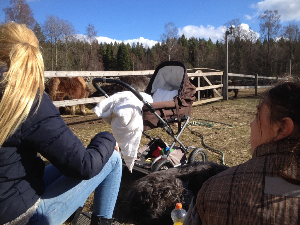 Mätta och belåtna fixade vi i ordning lite i stallet och sedan tog vi in hästarna och förberedde lite inför morgondagen med hagar och mat med mera. Jag pysslade lite med min lilla tjej en stund också innan hon fick vara i fred. En trött tjej var det som vi lämnade i stallet för kvällen!