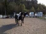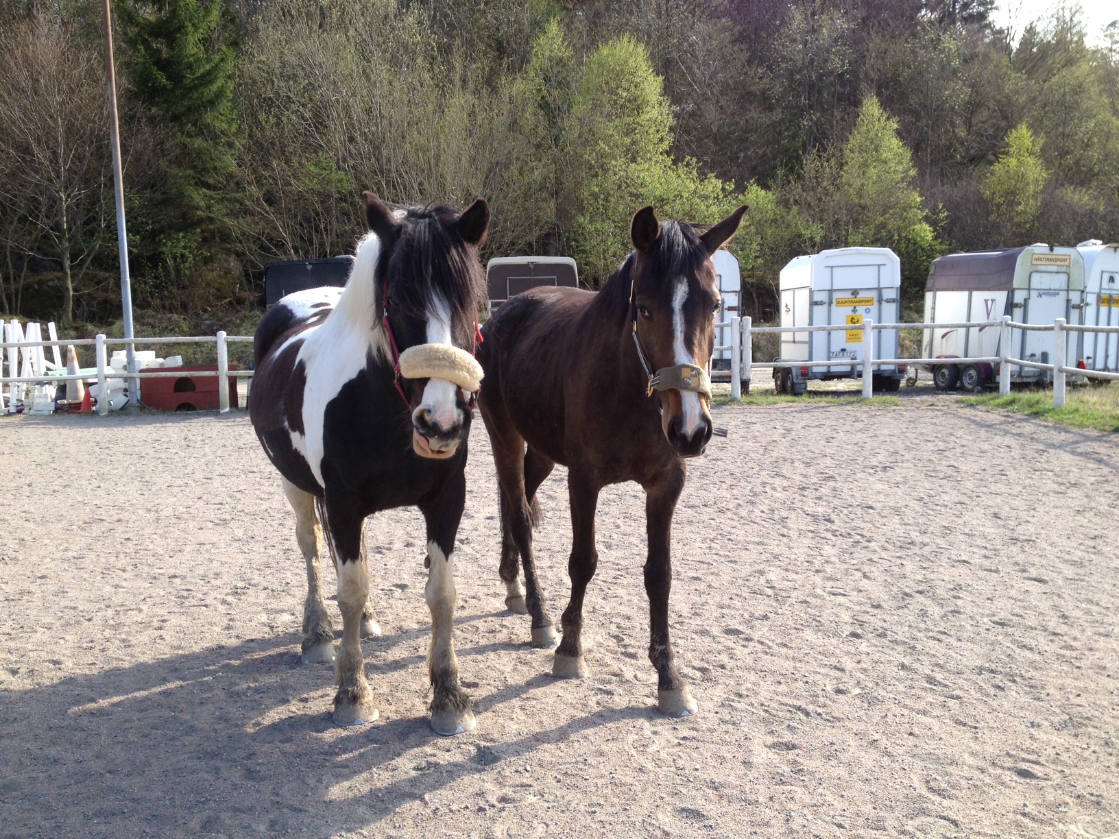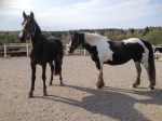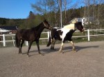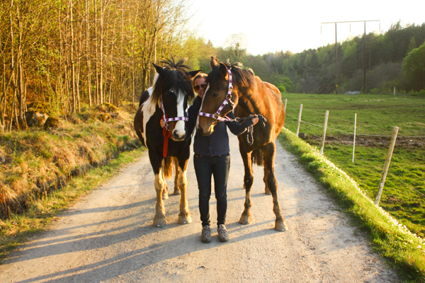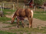 Efter en himla massa telefonsamtal till olika jourveterinärer och kliniker fick Sofia äntligen tag på en veterinär som kunde komma ut och kika på fölet, samt ge fölet plasma om det behövdes (för antikropparnas skull). Veterinären var på plats 21.25 och vi tog då in Blondie och fölet i stallet. där det var lite bättre ljus. Här blev det lite tokigt, men det gick bra till slut. Blondie följde nämligen med lite för villigt in i stallet och fölet hängde inte efter, så när Blondie upptäckte det blev hon helt hysterisk och alla hästar inne i stallet blev lika tokiga dem. De gnäggade, for runt i sina boxar och förde ett herrans liv. Vi fick in Blondie i en box där hon fick lugna sig ett ögonblick medan vi hade fölet precis utanför boxdörren. Blondie var nämligen inte helt kontaktbar vid det tillfället så vi vågade helt enkelt inte släppa in fölet med risk för att Blondie skulle trampa ner henne i sin upprörda klumpighet. Till sist lugnade hon sig i alla fall så pass så vi vågade gå in med fölet och då blev hon ytterligare lite lugnare. Här fick de sedan vara i fred en stund, medan vi förberedde för veterinären.