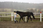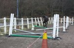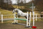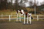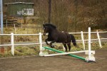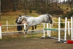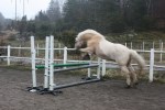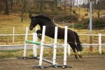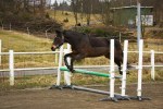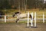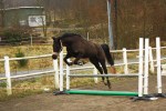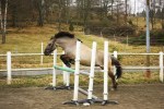 För Kaprifol fick faktiskt var med och ”löshoppa” idag, och det gick bra! Det tog ett par, kanske tre varv innan hon helt förstod poängen med det hela, men sen fick hon lite bättre bjudning och hoppade ett 30cm-hinder i galopp. Lite vingligt och inte helt i ordning med de långa benen, men hon skuttade över och verkade inte tycka att det var tråkigt i alla fall! Det blev fem rundor för henne ungefär, varav en var i skritt, så inte så mycket direkt men vi ska ju göra det flera gånger!