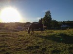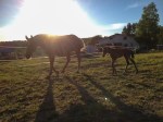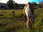 I går kväll hjälpte jag till att släppa ut Blondie och fölet i sin hage en stund, och lite senare passade jag på att gosa lite med dem båda. Både Blondie och fölet fullkomligt älskar att bli kliad på halsen, så det är inte så svårt att bli poppis! Fölet (ännu utan namn…) är väldigt nyfiket och hon är ganska så modig! Blondie har stenkoll såklart men när hon ser att det bara är jag som närmar mig så har hon inga problem med att lämna fölis hos mig och gå bort till andra änden av hagen och beta. Skönt med fölvakt kanske?