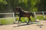 Kaprifol är född 2010-04-15 och (samma dag som mamma!) och har alltså ganska nyligen fyllt fyra år. Som ni säkert förstår ligger hon långt efter i sin utbildning då många av dagens hästar rids in redan som 2.5-3-åringar för att matchas mot 3-årstesten som går av stapeln på våren. Jag har dock ingen större brådska utan det kommer får ta den tid det tar. Det här är första gången jag rider in en häst ”på riktigt” så jag räknar med att det kommer ta längre tid än om ett proffs skulle göra det, såklart.