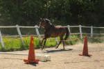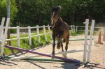 Marcello (f.2002, holländsk import) är inte så mycket hoppad, men han gör det med glädje! Just studs tyckte han var lite klurigt så bommarna flög ett par gånger innan vi fick ordning på grejerna. Vi höll dock inte på så länge, det är en krävande övning och Marcellos något runda mage gjorde nog inte saken mindre jobbigt för honom!