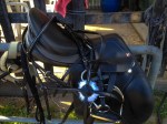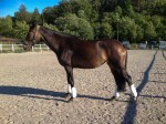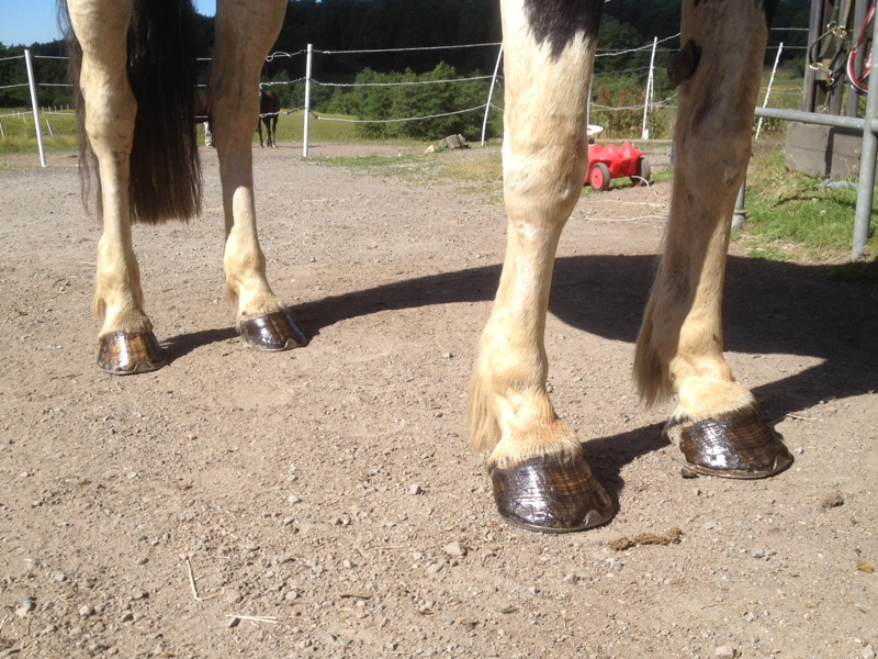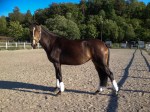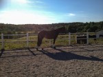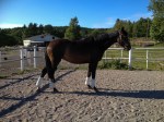 När vi styrde ner i skogen igen på väg hemåt tog Alice täten och tempot var nu lagom för att Kaprifol skulle kunna gå avspänt ett par meter bakom hela vägen. Jag hoppade av när vi gick nerför den brantaste delen mot slutet, det var väldigt halt och slirigt efter allt regn. Jag hoppade dock upp igen (med Axels hjälp) när vi kommit ner på fast mark igen. Blev alltså flera uppsittningar idag, inte så dumt!