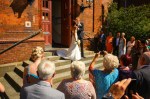 Igår var jag och Axel alltså på Axels kusins bröllop i Varberg och det blev en jättefin och trevlig eftermiddag och kväll! Vigseln började halv fyra i Varbergs Stadshus och den var fin med lite trevliga ord från vigselförrättaren, lite sång och så det obligatoriska ”ja”-sägandet. Mottagande på stadshustrappan följde och det var många som anammade den underliga seden med att kasta ris på brudparet, men det avstod både jag och Axel. Bruden hade sedan ris i sin vackra frisyr hela kvällen..